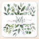 Monogram Sage Green Eucalyptus Greenery Leaves Square Paper Coaster