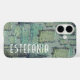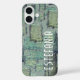 Pastel aesthetic trendy cool monogram initial letters name iPhone case.. Customizable,personalizable if you wish,or the script can be simply deleted.Monochrome monochromatic, neutral, natural aspect, with subtle nuances of sage green,olive green,teal blue, cyan, grey and white.Distressed grunge artistic image look and matching font choice.Muted powdered soft tones nuances for decorative abstract design. Textile collage patchwork interpretation, a cool fashionable accessory and protection for your iPhone or as a beautiful creative original thoughtful gift idea.