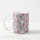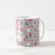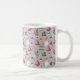 Add your Monogram or Initials to this Santa Gnome for Christmas Pattern Silver Grey Coffee Mug. A blue background pattern with gnomes, presents, holly, candy canes, Christmas trees, and Santa's bag. Personalize this with your initials. Edit it for more customization.