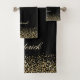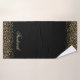 Monogram Script Black Gold Leopard Print Glitter Bath Towel Set
