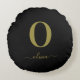 Monogram Script Name Personalized Black And Gold Round Pillow