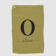Monogram Script Name Personalized Gold And Black Golf Towel