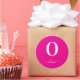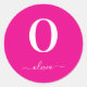 Monogram Script Name Personalized Hot Pink White Classic Round Sticker