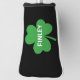 Add a pop of personality to your golf bag with our monogram shamrock putter golf head cover. Not only does it keep your putter safe and secure, but it also showcases your individual style with a custom monogram and charming shamrock motif. Treat yourself with this practical and stylish accessory that features your name printed in white over a green shamrock with a black background, adding some Irish charm to your game. You can change the color and text of the font as well as the background color by using Zazzle's customize feature. Check out our other Monogram Shamrock golf items too!