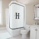 Shower Curtain with your last name and initial with a black border and black initial. Background can be any colour, as can font. from HAMbyWhite Glove aka HAMbWG