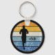 This unique keychain features a black silhouette male runner which is placed on a retro style circle rainbow background of distressed stripes. The runner image is placed off center, with your triple letter monogram at the right side. The image is bordered in black. The back is also black, with two fields for your custom text.