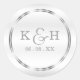 Stickers ready for you to personalize.. Monogram Silver Metallic and White Round Label stickers are a perfect way to embellishing your envelopes, treat bags, party favours in an unique way. ✔NOTE: ONLY CHANGE THE TEMPLATE AREAS NEEDED! 😀 If needed, you can remove the text and start fresh adding whatever text and font you like. 📌If you need further customization, please click the "Click to Customize further" or "Customize or Edit Design" button and use our design tool to resize, rotate, change text colour, add text and so much more. ⭐This Product is 100% Customizable. Graphics and / or text can be added, deleted, moved, resized, changed around, rotated, etc... ⭐99% of my designs in my store are done in layers. This makes it easy for you to resize and move the graphics and text around so that it will fit each product perfectly. 📌 (Please be sure to resize or move graphics if needed before ordering) You can also "TRANSFER DESIGN" on other Zazzle products and adjust the design to fit most of Zazzle items. (button is down on the right side of the page) This design is made with high resolution vector and/or digital graphics for a professional print. 📌NOTE: (THIS IS A PRINT. All #Zazzlemade product designs are "prints" unless otherwise stated under "About This Product" on the left side of this page) The design will be printed "EXACTLY" like you see it on the screen and on the product...so please make sure when you do your changes on the resizing of any of the graphics or text that it fits in the areas correctly and that your spelling and wording is how you like it to be in size, colour and font. If you have any questions about the "DESIGN ONLY" or need help please contact me at ✉ siggyscott@comcast.net or visit my store link: https://www.zazzle.com/store/designsbydonnasiggy (Copy and Paste) I'll be happy to help. 📌 ALL OTHER QUESTIONS (shipping, refund, the printing, the product, etc...) please contact Zazzle or the Maker ⭐DIRECTLY⭐. Thank you for the support and stopping by my store - DesignsbyDonnaSiggy. © Donna Siegrist ALL RIGHT RESERVED (This is an 🥇ORIGINAL ART DESIGN by Donna Siegrist) ⭐⭐⭐ ZAZZLE promises 100% satisfaction. If you don't absolutely love it, Zazzle will take it back! ⭐⭐⭐ 1-888-8ZAZZLE (1-888-892-9953) Phone hours: Mon - Fri: 9AM - 5PM PT (12PM - 8PM ET)