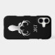 A silver silhouette buck deer head, complete with antlers, is the feature on this simplistic phone case. Your monogram is in matching silver above the image. Simple, attractive, and definitely distinctive.