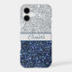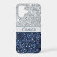 A fun trendy stylish silver and blue glitter monogrammed Samsung phone case. Available in all current Samsung phone case sizes.