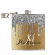 Monogram Silver Glitter Drips Girly Sparkle Flask