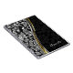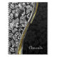 Elegant metallic grey and black floral damask with silver and gold vertical wavy stripes. Custom monogram
