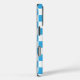 Cool iPhone case features a bold sky blue and white chequered pattern with a customizable monogram. Add (or delete) 3 initials or numbers in the sidebar to personalize it. The geometric chequerboard pattern is made of rows of alternating white and bright blue squares. Other case styles and models also available in the sidebar.