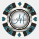 Monogram Slate Blue Casino Poker Chip Design Classic Round Sticker