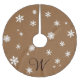 This tree skirt is accented with your family monogram on an illustrated burlap background covered in snowflakes.