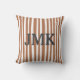 Monogram Terracotta Modern Stripes Minimalist Throw Pillow