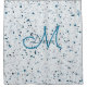 Monogram terrazzo retro vintage teal blue green grey white elegant pattern design shower curtain. Look for matching products in my store collection. Classy, trendy, antique, chic, modern, cool, beautiful mosaic bathroom decor. Image copyright Marg Seregelyi Photography.