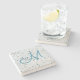 Monogram Terrazzo Teal Blue Green White Grey Retro Stone Coaster