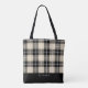 Stylish and fun, this Tan Black and White Thompson Camel Tartan Plaid Pattern Monogram tote bag is the perfect accessory when shopping or out and about. Large enough to hold several items for kids or baby when travelling or to use when going to the farmer's market. Features black, tan, and white Thomson Camel plaid tartan pattern with changeable white typography "TIFFANY." Great for men, hunters, or any plaid lover.