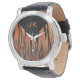 Stylish and trendy Black and Hot Orange Tiger Striped Pattern Vintage Leather Watch by Imagine That! Design with our unique touch of texture and pizazz in bright orange colours to satisfy the needs of tiger lovers, wild animal print lovers, and jungle print lovers of all ages. Don't forget to customize the initials to make this your very own. Go wild today with ITD Wild Me Tiger stripes.