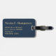 Luggage tag with grey and green carp fish, monogram initial(s)/name on a black stripe monogram frame, name, and address information on a blue background. Personalize with your monogram initial(s)/name, name, and address information using the easy templates. Font colour, font style, font size, and blue background colour are customizable.