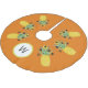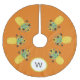 This festive tree skirt is decorated with Christmas pineapples and stars in shades of yellow and green on an orange background.