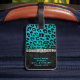 Étiquette À Bagage Turquoise de monogramme, étiquette noire de bagage