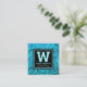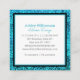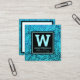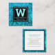 A turquoise and blue ombre leaf foliage damask pattern on a rich, deep turquoise textured background adorns this stunning, modern, trendy custom square business card. Personalize with your initial, full name, and business on the front. Fill in the back side with your phone numbers, address, email, website, and social media accounts. Makes a chic, smart, and stylish statement wherever you go.