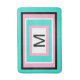 Black Monogram against white backgrond. Geometric rectangles in pretty light pink, turquoise, black and white. Original Designs by TamiraZDesigns.