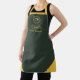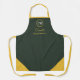 A stylish and two-tone apron in forest green and gold colours with a forename, occupation or hobby and monogram letters. It could be used at home, to make a gift or for employees in a professional setting such as a flower shop, a pastry shop, etc.