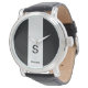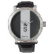 A minimalist monogram design with a grey stripe down the centre with a monogram and your name below. The perfectly custom gift or accessory!