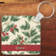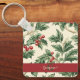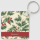 Monogram Vintage Christmas Holly & Berries Pattern Keychain