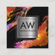 Monogram Watercolor Brushed | Metallic Banner Square Business Card