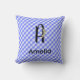 Monogram watercolor flower gingham blue pattern throw pillow