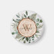 Monogram Watercolor Rustic Wood Slice and Foliage Magnet
