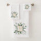 Introducing our Monogram Watercolor Tropical Green Leaves Bath Towel Set. Featuring watercolor illustration of greenery bouquet arrangement with customizable monogram on the middle in gold color. Suitable as a gift for nature lovers.
