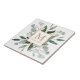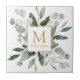 Introducing our Monogram Watercolor Tropical Green Leaves ceramic tile . Featuring watercolor illustration of greenery bouquet arrangement with customizable monogram on the middle in gold color. Suitable as housewarming gift for nature lovers.