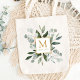 Monogram Watercolor Tropical Green Leaves Tote Bag