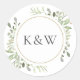 Monogram Watercolour Greenery Wedding Favour Classic Round Sticker