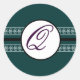 Monogram Wedding Borders Deep Teal Classic Round Sticker