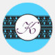 Monogram Wedding Bright Blue Borders Classic Round Sticker