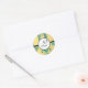 Monogram Wedding Brite Aqua Blue Borders Classic Round Sticker