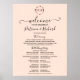 A simple chic foliage rose gold foil monogram peach rose wedding ceremony program sign foam board. Easy to personalize with your details. Modern boho wedding ceremony program sign foam board editable, wreaths photo wedding invitation, customizable, calligraphy handwritten font, simple, elegant.
