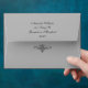 This is the coordinating Envelope for the Monogram Wedding Invitation and Save the Date. The return address is in a elegant type accented with the same decorative design used throughout the line.