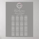 Easy to personalize with your details. A simple chic floral faux foil monogram grey wedding seating chart. Modern boho wedding seating chart editable, customizable, calligraphy handwritten font, simple, elegant.