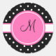 Monogram White and Black Polka Dot Pattern Classic Round Sticker