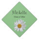 Cute floral monogram Graduation Cap topper set on a green background. With a white and yellow daisy image, black lettering can be customized with your name and your graduation year. Great for celebrating your big day.