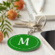 A keychain with a white monogram on a green background. Customize the keychain with your own initial or initials, colours, among other options.