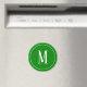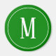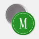 A round magnet with a white monogram on a green background. Customize the magnet with your own initial or initials, colours, among other options.