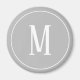 A round magnet with a white monogram on a grey background. Customize the magnet with your own initial or initials, colours, among other options.