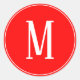 A classic round sticker with a white monogram on a red background. Customize the sticker with your own initial or initials, background colour, among other options.